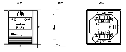 三、J-SAP-EIN20型手動(dòng)火災(zāi)報(bào)警按鈕外形及安裝尺寸