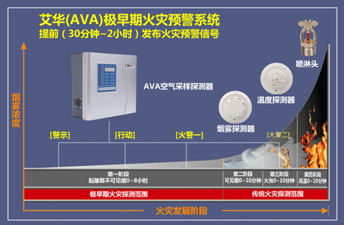 吸氣式感煙火災(zāi)探測器其靈敏度是傳統(tǒng)普通的煙感1000倍左右,吸氣式感煙火災(zāi)探測器還可以檢測到運用早期的技術(shù)無法看到的更小的空氣顆粒——這些顆粒經(jīng)常是在過度受熱這一火災(zāi)的早階段以及明火中產(chǎn)生出來的。