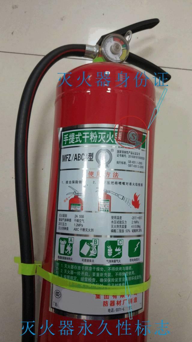 1、干粉滅火器瓶體法定報廢年限為10年:可通過壓力表上出廠日期或瓶體有無身份證判定滅火器瓶體出廠日期(自2008年1月1日起,防火門、滅火器、消防應(yīng)急燈三類產(chǎn)品全面實行消防產(chǎn)品身份證制度)(如下圖);