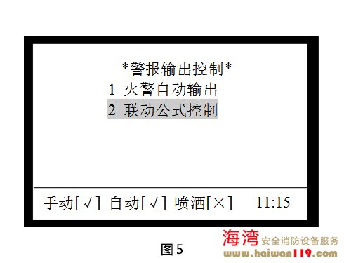 在圖2界面下,按3進(jìn)入“警報(bào)輸出控制”界面,如圖5所示。