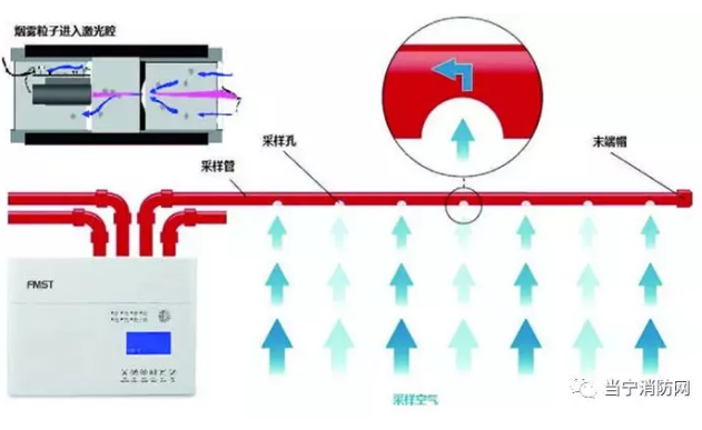 其工作原理在于通過(guò)分布在被保護(hù)區(qū)域內(nèi)的采集管網(wǎng)采集空氣樣品,經(jīng)過(guò)一個(gè)特殊的過(guò)濾裝置濾掉灰塵后送至一個(gè)特制激光探測(cè)器??諝鈽悠吩谔綔y(cè)器中經(jīng)過(guò)分析,將空氣中燃燒產(chǎn)生的微粒加以測(cè)定,由此給出準(zhǔn)確的煙霧濃度值,并根據(jù)使用者事先設(shè)定的報(bào)警煙霧濃度值發(fā)出火災(zāi)報(bào)警。而此次全新上市的FMST-FXV(E)系列則在技術(shù)性能上全面升級(jí)。