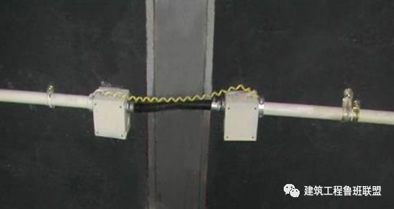 電線管穿越變形縫采用金屬軟管連接兩線盒,并作跨接處理。